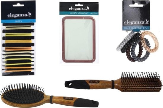 Voordeel set Haarborstel set met spiegel en haaraccessoires