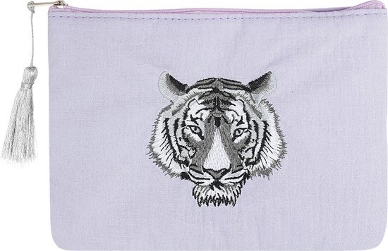 Make-up tas met tijger hoofd - lila