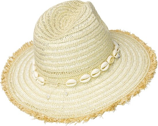 Trend alert!! Hoe leuk is deze off-white strandhoed met witte schelpjes op de rand! Super trendy en mega leuk voor aankomend seizoen. Deze hoed is perfect te combineren met meerdere schelpjes sieraden. De hoed is gemaakt van 90% papier, 5% zeeschelp en 5% metaal. Naast deze toffe variant is de hoed ook verkrijgbaar in een beige variant. Perfect voor heerlijke zomerse stranddagen of een tof feestje.