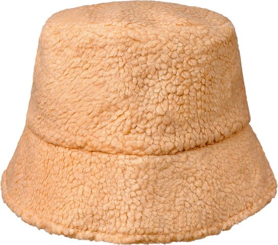 Deze Bucket Hat heeft een teddy look en is in de kleur Camel.