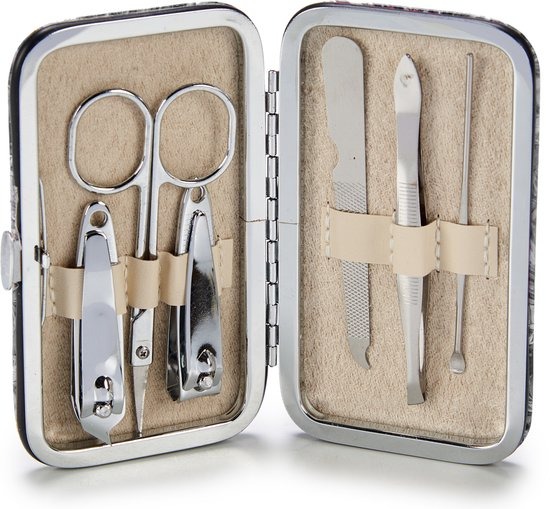 De manicurset van Arte Regal is verpakt in een handig bewaardoosje. De set bestaat uit twee nagelknippers, een nagelschaartje, een nagelijl, een pincet en een bokkenpootje. Super handig voor in jouw handtas of voor wanneer je op reis gaat.