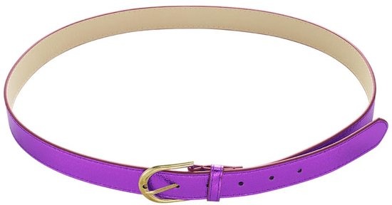 Geef jouw outfit meer pit dankzij deze metallic riem in de kleur paars! Deze riem maakt jouw outfit helemaal af! Leuk om deze riem te combineren met meerdere paarse accessoires! Riem metallic is gemaakt van 95% PU en 5% metaal! De riem maat is 100 cm