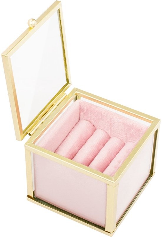 Maak kennis met onze prachtige roze en gouden sieradenbox, een must-have voor elke sieradenliefhebber! Dit glazen ringen display is niet alleen een stijlvolle manier om je favoriete ringen te tonen, maar het biedt ook een overzichtelijke manier om in één oogopslag te zien welke prachtige sieraden je wilt uitlichten. Met een afmeting van 7 bij 7 bij 6 centimeter past het perfect op elke dresser of nachtkastje. Het display is vervaardigd uit hoogwaardige materialen zoals glas, metaal, flanel, papier en spons, wat zorgt voor een luxe uitstraling en duurzaamheid. Verkrijgbaar in zowel wit als roze, kun je de kleur kiezen die het beste bij jouw stijl past. Geef je sieraden de presentatie die ze verdienen en voeg een vleugje elegantie toe aan je interieur met deze schitterende sieradenbox!