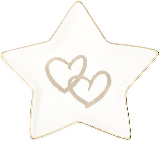 Ontdek de charme van onze witte stervormige schotel, een prachtig keramisch stuk dat niet alleen functioneel is, maar ook een vleugje romantiek aan uw interieur toevoegt. Met een afmeting van 11 bij 11 bij 1,2 cm is deze schotel perfect voor uw sieraden of als decoratief element op uw tafel. De twee hartjes die op de schotel zijn afgebeeld, stralen liefde en warmte uit, waardoor het een ideaal cadeau is voor speciale gelegenheden zoals verjaardagen, huwelijken of gewoon om iemand te verrassen. Het hoogwaardige keramiek zorgt ervoor dat de schotel duurzaam en gemakkelijk te reinigen is, terwijl het elegante ontwerp een stijlvolle aanvulling vormt op elke eet- of woonruimte. Voeg een vleugje magie toe aan uw dagelijkse leven met deze unieke schotel die zowel praktisch als esthetisch aantrekkelijk is.