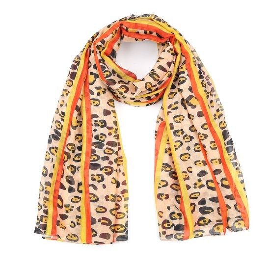 Maak een statement met deze prachtige sjaal in een trendy luipaardprint, verrijkt met levendige gele, blauwe en witte strepen. Met een royale afmeting van 90 cm x 180 cm is deze sjaal perfect om je outfit een speelse en stijlvolle touch te geven. Gemaakt van hoogwaardig viscose, voelt de sjaal heerlijk zacht aan en is hij gemakkelijk te draperen, waardoor je eindeloos kunt variëren in hoe je hem draagt. Of je nu een casual look wilt creëren of een chique uitstraling wilt toevoegen aan je avondoutfit, deze sjaal is de ideale accessoire. Voeg een vleugje flair toe aan je garderobe en laat je persoonlijkheid stralen met deze unieke sjaal!