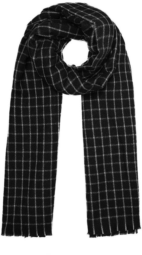 Wikkel deze sjaal nonchalant om je nek of drapeer hem over je schouders als een deken; deze zwart-wit geblokte sjaal is jouw sleutel tot een chique en behaaglijke winter.