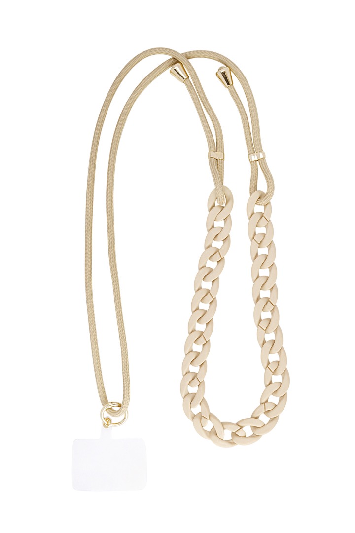 Dit geschakelde telefoonkoord is een echt aanwinst voor jouw collectie. Naast dat het een praktisch item is is het ook nog eens een leuke toevoeging aan een outfit.