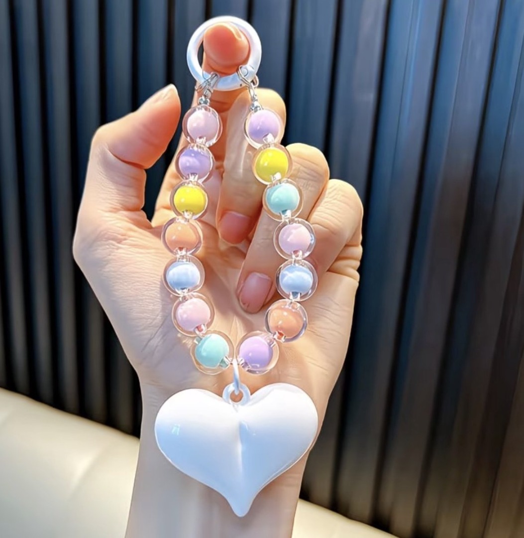 Maak kennis met onze handgemaakte kralen sleutelhanger / tassenhanger of telefoonkoord, een kleurrijke toevoeging aan je dagelijkse accessoires! Deze charmante sleutelhanger is versierd met een prachtig hartontwerp en een levendige ketting van kleurrijke kralen die elke outfit opvrolijkt. Perfect om aan je mobiele telefoon te hangen of als een klein, persoonlijk cadeautje voor een vriend(in). De combinatie van de speelse kleuren en het schattige hartje maakt het een ideale manier om je stijl te uiten en je sleutels of tas een unieke flair te geven. Voeg een vleugje liefde en kleur toe aan je leven met deze betoverende sleutelhanger!