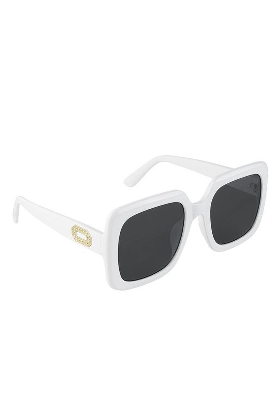 Hoe tof is deze wit kleurige zonnebril in een prachtig basic montuur met gouden logo details! Deze zonnebril heeft een trendy model en is perfect te dragen tijdens een middagje terras of dagje strand. Deze zonnebril is perfect te combineren met een toffe hoed of strandtas! Zonnebril met structuur is gemaakt van PC