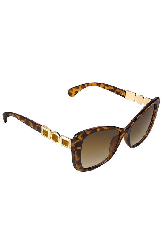 Wauw! Hoe tof is deze prachtige bruine zonnebril met print en met gouden details! De zonnebril heeft een stoer uiterlijk en is perfect voor een dagje strand of terras! De zonnebril is perfect te combineren met bijvoorbeeld een leuke haarband of kleurrijke tas! Ook leuk om deze zonnebril te combineren met statement oorbellen. De zonnebril is gemaakt van PC