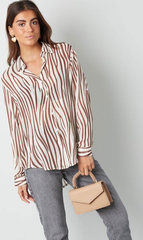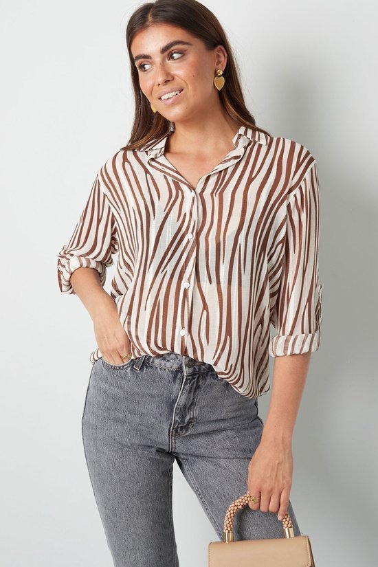 Wauw! Hoe tof is deze trendy blouse met aesthetic print in de kleur wit en bruin. Mega trendy en perfect te dragen het gehele jaar door. Erg leuk om deze blouse te combineren met statement oorbellen en hakken of sneakers! Zeer leuk te combineren met zomerse temperaturen maar ook leuk te stylen tijdens het najaar. Ook leuk om een matchende haarband te dragen. De blouse is gemaakt van 100% polyester en is verkrijgbaar in de maten: S - M - L.