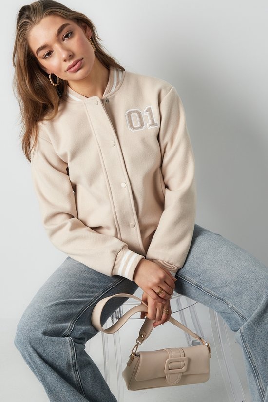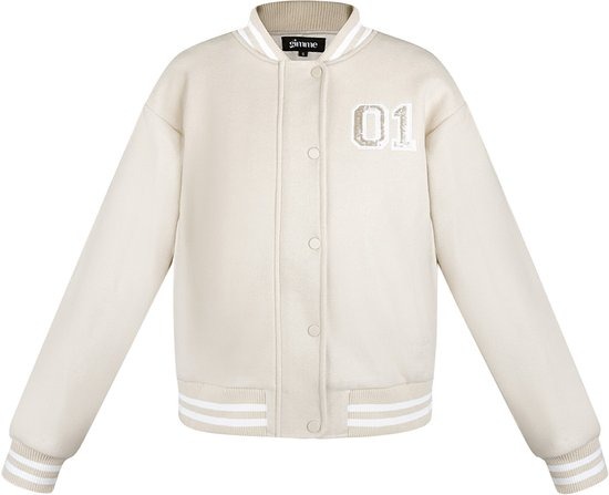 YWG - Polyester Vrouwen Bomber Jas Sportief Geborduurd Nummer - Gebroken Wit