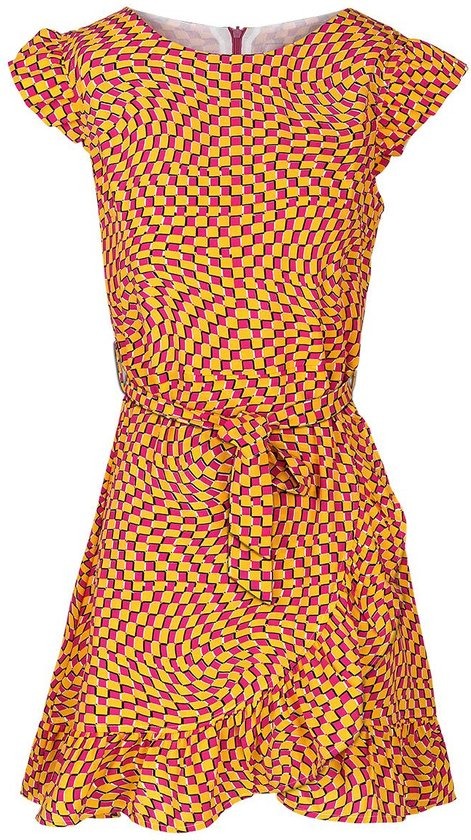 Wikkeljurk met tailleband en retroprint.