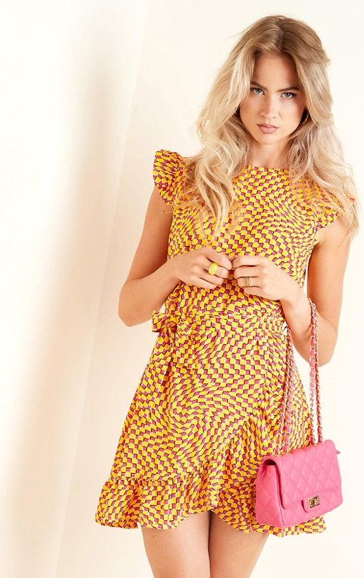 YWG - Wikkeljurk retro print Fuchsia & Geel
