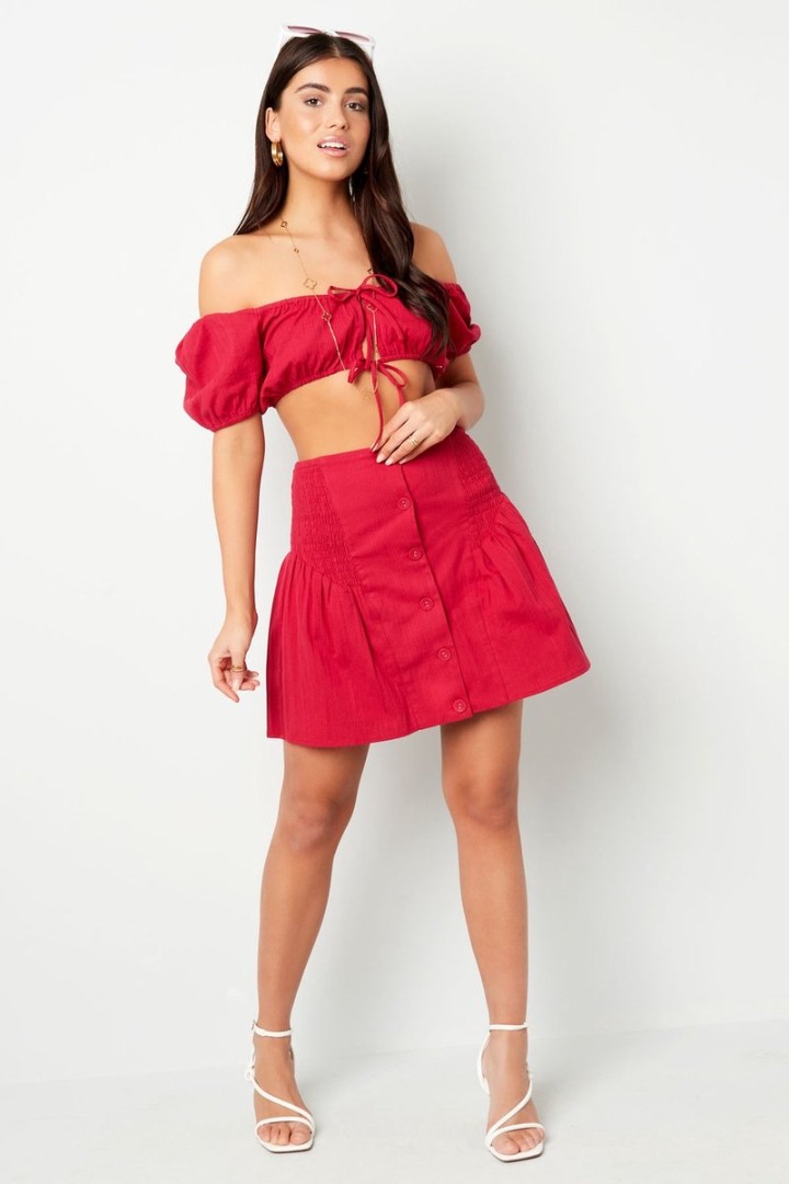 Deze prachtige rode katoen minirok is een must-have voor elke modebewuste vrouw. Met een verfijnde knopvoorkant die zowel functionaliteit als esthetische precisie biedt, is deze rok perfect voor zowel casual als semi-formele gelegenheden. De plooidecoratie voegt een speelse dimensie toe, terwijl de stevige naden en geënteerde tailleband zorgen voor een uitstekende pasvorm en langdurige prestaties. Verkrijgbaar in klassiek wit, levendig rood en licht blauw, is deze rok een veelzijdige aanvulling op uw garderobe.