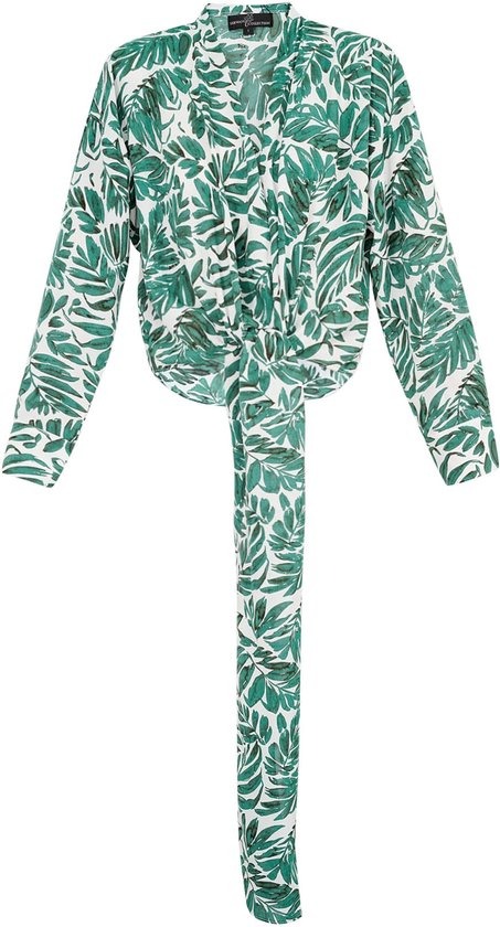 Deze polyester vrouwen lange mouw top heeft een stijlvolle wrapconstructie die de lichaamscontouren versterkt terwijl het gemakkelijk te dragen blijft. Het wrap stijl ontwerp levert een gepaste pasvorm met een zachte V-hals, ideaal voor combineren of als standalone item. Gemaakt met een Tropische print patroon van levendige groene bladeren op een schone witte achtergrond, brengt de top een frisse, natuurinspirerende esthetiek naar moderne garderobes. Ontworpen voor retailomgevingen die consistente kwaliteit en visuele impact vereisen, is dit model geïngineerd voor duurzaamheid en wasbestendigheid. Beschikbaar in groene en oranje varianten, ondersteunt het dynamische merkstrategieën tijdens de lente- en zomerseizoenen. De lange mouw snit zorgt voor aanpasbaarheid in overgangsklimaten, waardoor het een betrouwbare toevoeging is aan elke collectie. Als onderdeel van de gimme merklijn reflecteert deze top precisie in ambacht en marktklaar ontwerpprofiel.