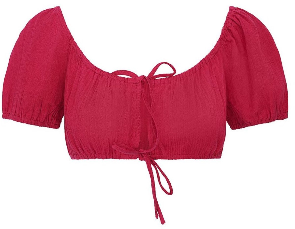 YWG - Katoen Vrouwen Korte Mouw Top Pofmouw Knoopvoorkant - Rood