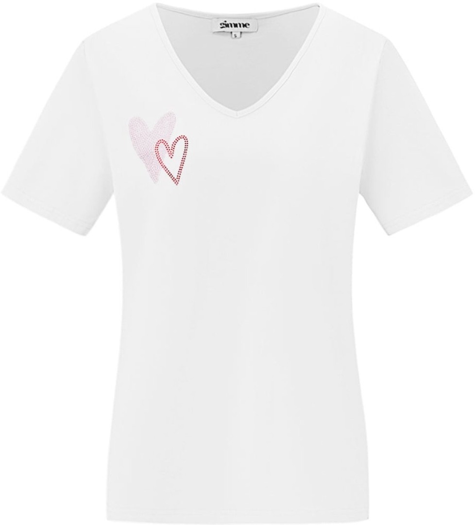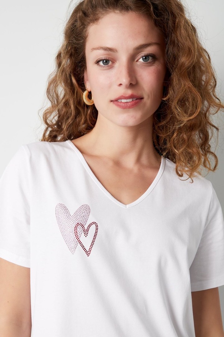 YWG - Dames katoenen V-hals T-shirt met geborduurd hartje - comfortabel en ademend - Wit