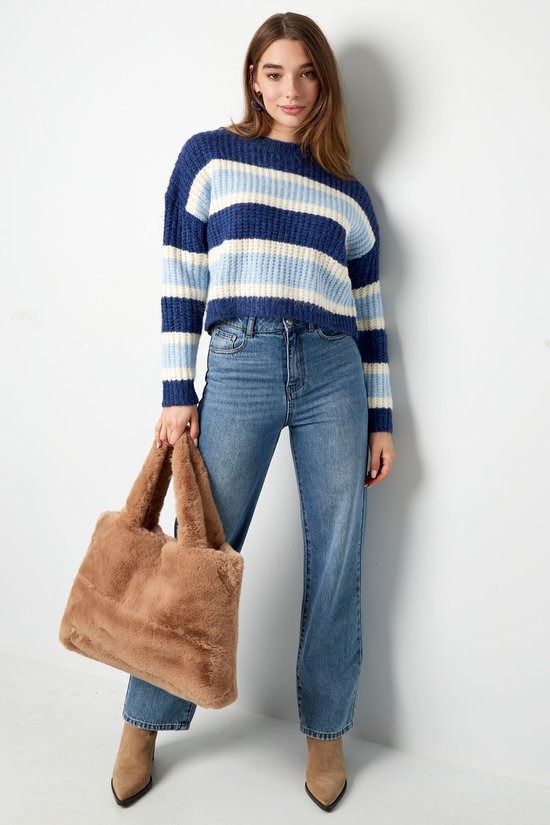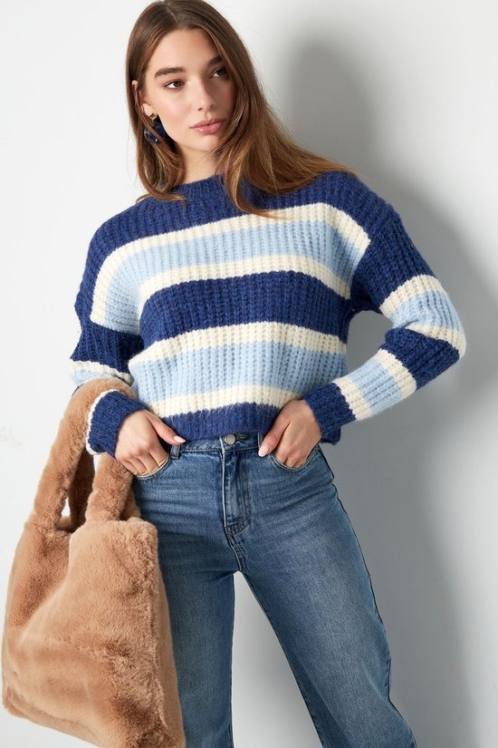 Op zoek naar de perfecte warme trui met strepen voor de herfst en winter? Dan is dit het item voor jouw winkel! Combineer deze trui met onze leren broeken of pantalons en jouw klant is ready to go. De trui is gemaakt van 45% acryl, 30% polyester en 25% nylon.