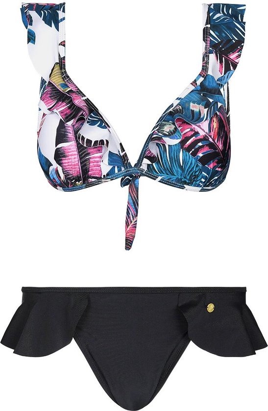 Maak je klaar voor de zomer met deze prachtige bikini met een tropische print! Deze bikini is perfect voor een dagje aan het strand of bij het zwembad, met een levendig ontwerp dat je meteen in de vakantiesfeer brengt. De felle kleuren en het exotische patroon van palmbomen en bloemen zorgen ervoor dat je opvalt, terwijl de comfortabele pasvorm je de vrijheid geeft om te genieten van elke zonnestraal. Gemaakt van hoogwaardige, sneldrogende materialen, biedt deze bikini niet alleen stijl, maar ook functionaliteit. Combineer het met een leuke sarong of een trendy strandhoed voor de ultieme zomerse look!