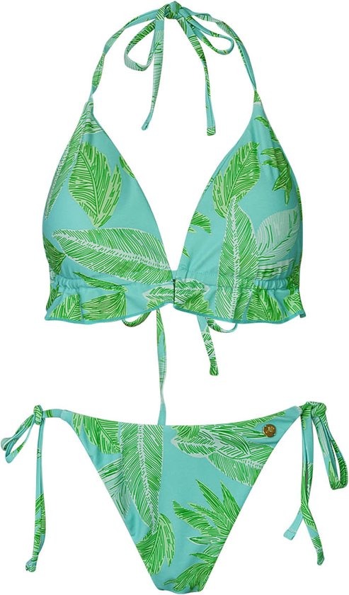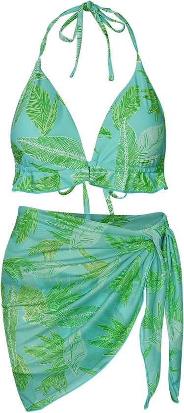 Ben jij op zoek naar een prachtig en trendy bikin met een leuke print voor jouw shop? Bekijk dan snel bikini blaadjes print in de kleurencombinatie groen en blauw! Deze bikini inclusief omslagrokje is perfect voor elke vakantie of strandfeestje en ziet er tevens super trendy uit! De bikini is eenvoudig te sluiten met strikknopen en daardoor ideaal te verstellen. Bikini blaadjes print is gemaakt van 82% nylon en 18% spandex. Je shopt deze prachtige bikini in de kleurencombinaties: blauw/groen en oranje/paars
