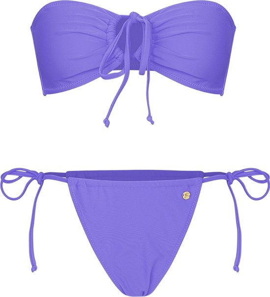 Hoe leuk is deze paarse bikini met cut out in het midden! Perfect voor een heerlijk stranddagje of leuk feestje! De bikini kan bijvoorbeeld ook superleuk gestyled worden met een denim short. De bikini is strapless en het broekje kan strakker worden gemaakt door middel van de strik sluiting. De bikini is gemaakt van 82% nylon en 18% spandex