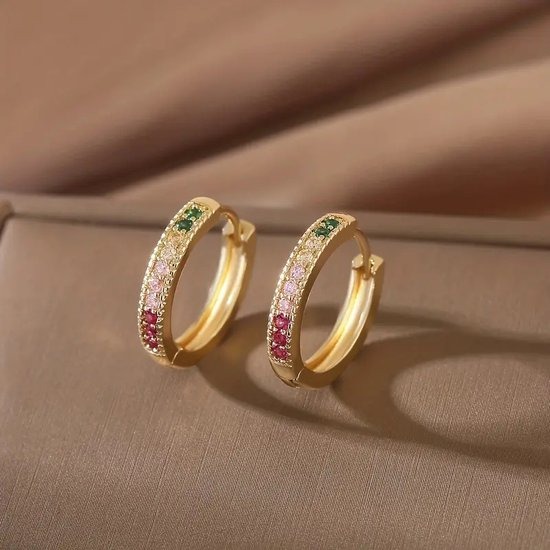 She Life Style - Kleurrijke glanzende zirkoon decor oorringen Boheemse Goth-stijl