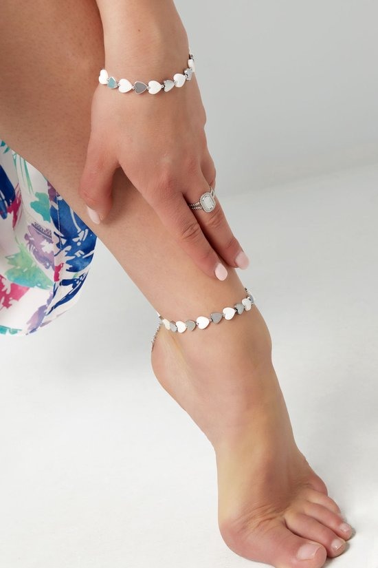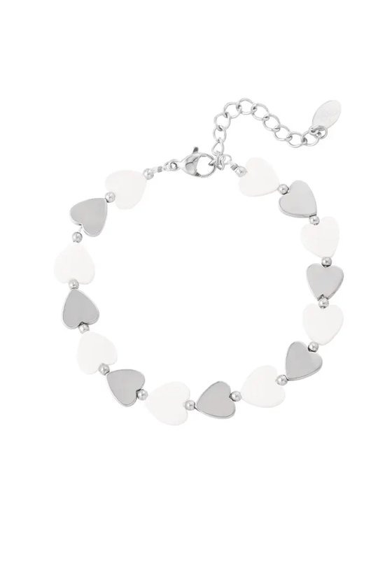 Wauw! Hoe leuk is deze zilveren met witte schakelarmband met bedels in de vorm van aansluitende hartjes. De perfecte armband om te combineren met meerdere armbandjes voor een speelse look! De armband is gemaakt van Stainless steel en zeeschelp en is voorzien van een verstelbare sluiting. Dankzij de verstelbare sluiting kun je de armband vanaf 16 cm, tot en met 19 cm dragen, ideaal! Ook als enkelbandje te dragen.