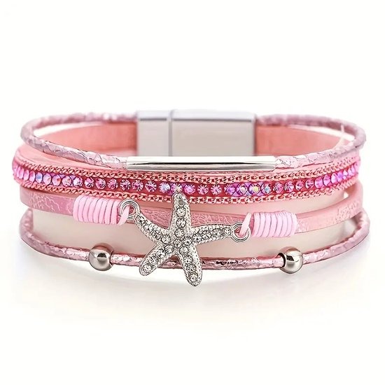 Deze prachtige wikkelarmband is perfect voor de zomer en zal zeker de aandacht trekken met zijn glanzende strass steentjes en sterren ontwerp. Gemaakt van hoogwaardig PU leer, voelt deze armband comfortabel aan om de pols en voegt een vleugje zoete elegantie toe aan elke zomerse outfit. Of je nu naar het strand gaat of gewoon wat extra flair wilt toevoegen aan je dagelijkse kleding, deze armband is een must-have accessoire. Het multi-layer ontwerp zorgt voor een speelse uitstraling en maakt het gemakkelijk om te combineren met andere sieraden. Voeg wat zomerse vibes toe aan je look met deze prachtige handgemaakte armband die zeker een favoriet zal worden in je sieradencollectie. Perfect als cadeau voor jezelf of voor een speciaal iemand die dol is op unieke en stijlvolle accessoires.