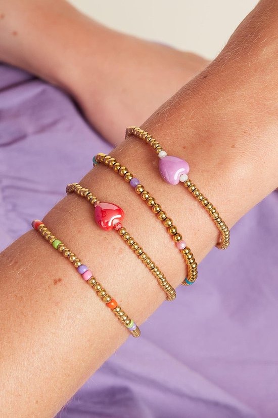 Gouden kralenarmband met kleurrijke hartkraal