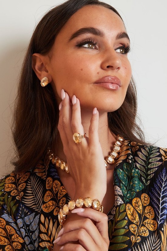 Wauw! Wat een prachtige eyecatcher is deze toffe armband met beige grote kralen! Superleuk te combineren met meerdere matchende sieraden en accessoires! Met deze statement armband maak jij direct jouw look compleet! De armband is gemaakt van koper in combinatie met glaskralen en heeft en diameter van 7 cm.