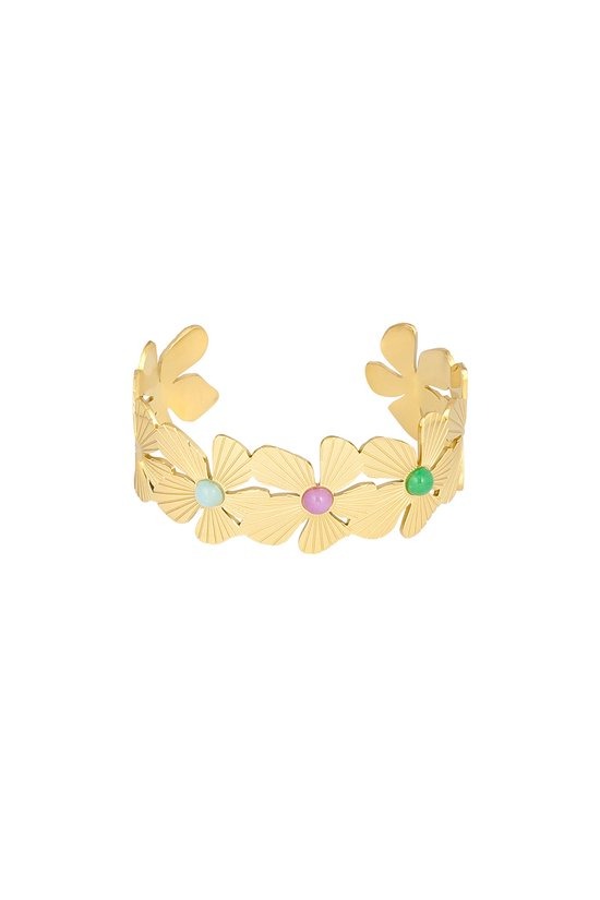 Ben jij op zoek naar een statement armband? Shop dan snel deze armband met verschillende kleuren stenen van Yehwang! De armband is voorzien van prachtige stenen en heeft een feestelijke uitstraling. Je kunt deze armband perfect enkel dragen maar ook zeer leuk te stylen met meerdere armbandjes! Deze armband is gemaakt van stainless steel.
