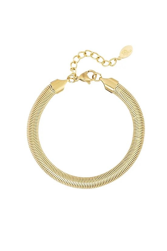 Hoe leuk is deze gouden armband in een plat model met een grove structuur. Te leuk om deze armband te combineren met meerdere sieraden met grove details. De armband is verstelbaar van 16,5 tot 19,5 cm en daardoor leuk om cadeau te geven. Daarnaast is de armband gemaakt van roestvrij staal. Verkrijgbaar in de kleuren goud en zilver. Goed om te weten, deze armband kan unisex gedragen worden!