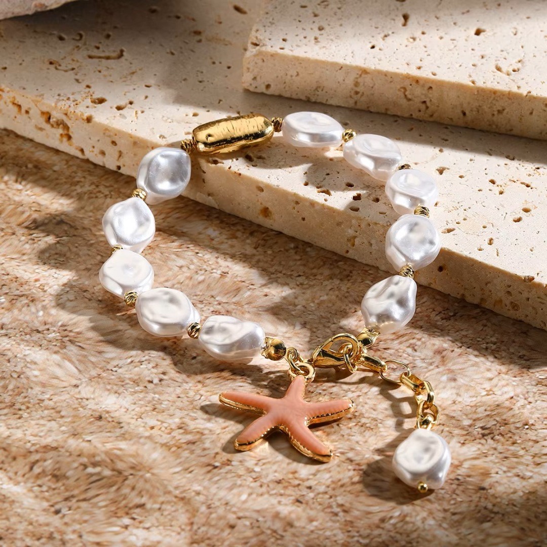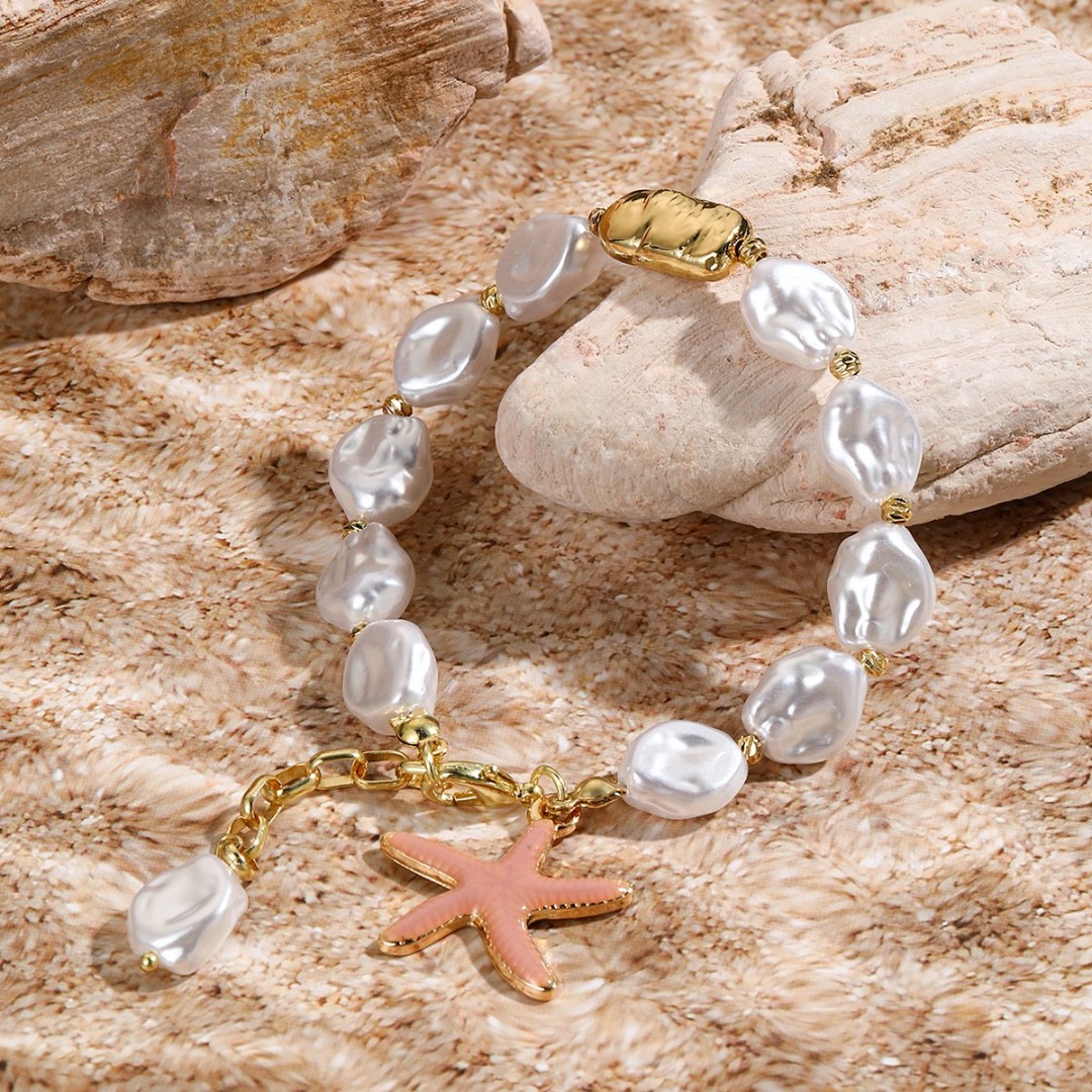 Deze armband, een verbluffend accessoire dat elegantie en charme prachtig combineert. Deze schitterende armband is voorzien van glanzende parels, elk zorgvuldig geselecteerd vanwege hun stralende glans, en creëert een tijdloze aantrekkingskracht die bij elke outfit past. Versierd met een delicate zeesterrenbedel, voegt dit stuk een vleugje kustachtige speelsheid toe, waardoor het perfect is voor strandliefhebbers en modefans. De zeester symboliseert leiding en bescherming, waardoor deze armband niet alleen een stijlvol accessoire is, maar ook een betekenisvol aandenken. Met oog voor detail vervaardigd, is de armband ontworpen voor comfort en duurzaamheid, zodat hij bij elke gelegenheid gedragen kan worden, van casual uitjes tot formele evenementen. Of je jezelf nu verwent of op zoek bent naar het perfecte cadeau, deze armband zal zeker een statement maken en een gekoesterde aanvulling op elke sieradencollectie worden. – waar elegantie de geest van de zee ontmoet.