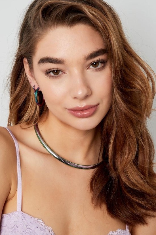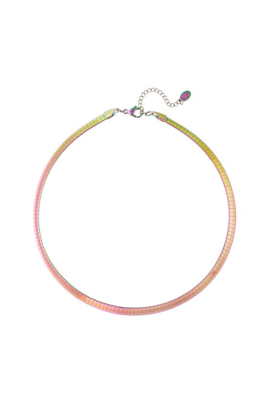 Hoe leuk is deze trendy holografische ketting met streepjes print! Helemaal leuk om de collectie van jouw winkel aan te vullen! Ketting holografisch met print is gemaakt van Stainless Steel en is te dragen vanaf 38 cm tot en met 43 cm. Deze ketting is superleuk te combineren met meerdere holografische sieraden!