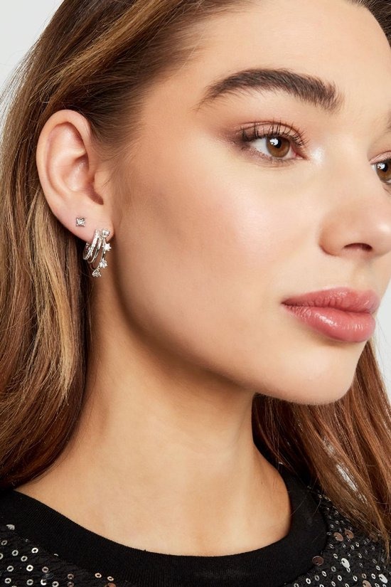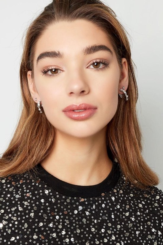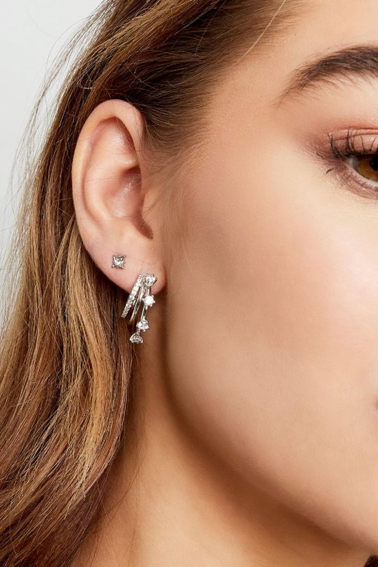Hoe leuk zijn deze prachtige zilveren oorbellen met meerdere ringen en witte strass steentjes! Leuk om deze oorbellen bijvoorbeeld te combineren met meerdere oorbellen met strass steentjes. Oorbellen strass met een twist zijn gemaakt van koper in combinatie met strass steentjes en hebben een afmeting van 2,3 cm. Deze leuke oorbellen zijn perfect voor een feestje