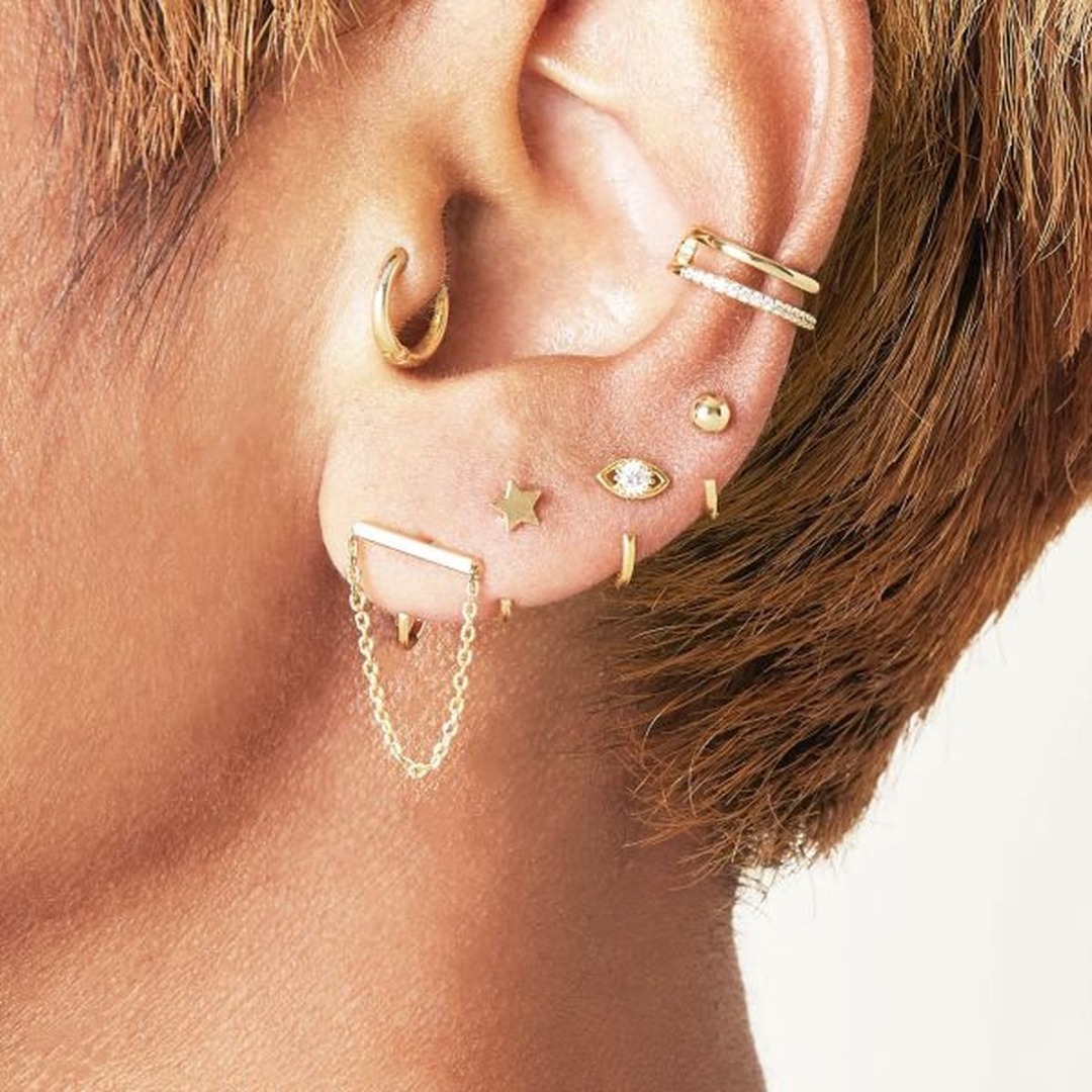 Dubbele earcuff met twee kleine steentjes