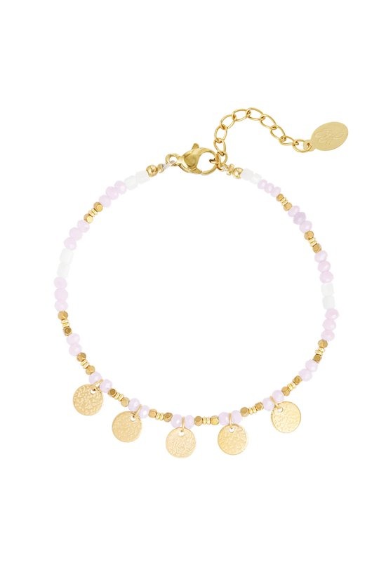 Deze prachtige armband is een perfecte combinatie van schattigheid en stijl, gemaakt van een betoverende mix van roze en gouden kralen. De gouden muntcharme voegt een vleugje luxe toe, waardoor deze armband niet alleen een accessoire is, maar ook een statement piece. Of je nu een casual outfit wilt opfleuren of een elegante look wilt aanvullen, deze armband is de ideale keuze. Verkrijgbaar in verschillende kleuren, is deze armband perfect voor de warme seizoenen en biedt het een veelzijdigheid die je niet wilt missen.