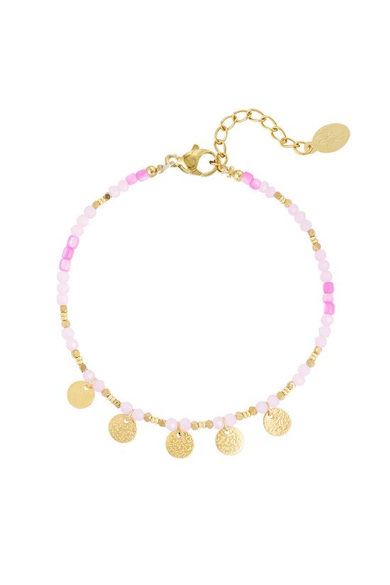 Deze schattige armband in een prachtige combinatie van roze en goud is een echte must-have voor jouw winkel! Met een stijlvolle schijfcharme die een vleugje elegantie toevoegt, is deze armband perfect voor elke gelegenheid, of je nu een casual outfit wilt opfleuren of een speciale gelegenheid wilt vieren. Verkrijgbaar in verschillende kleuren, biedt deze armband de veelzijdigheid die je nodig hebt voor de warme seizoenen. Wacht niet langer en voeg deze trendy armband toe aan je collectie – het is de perfecte aanvulling voor elke modebewuste vrouw!