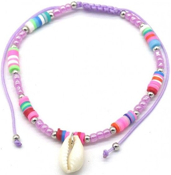 She Life Style - Enkelbandje Kralen en Schelp - Anklet - Lengte Verstelbaar - Paars
