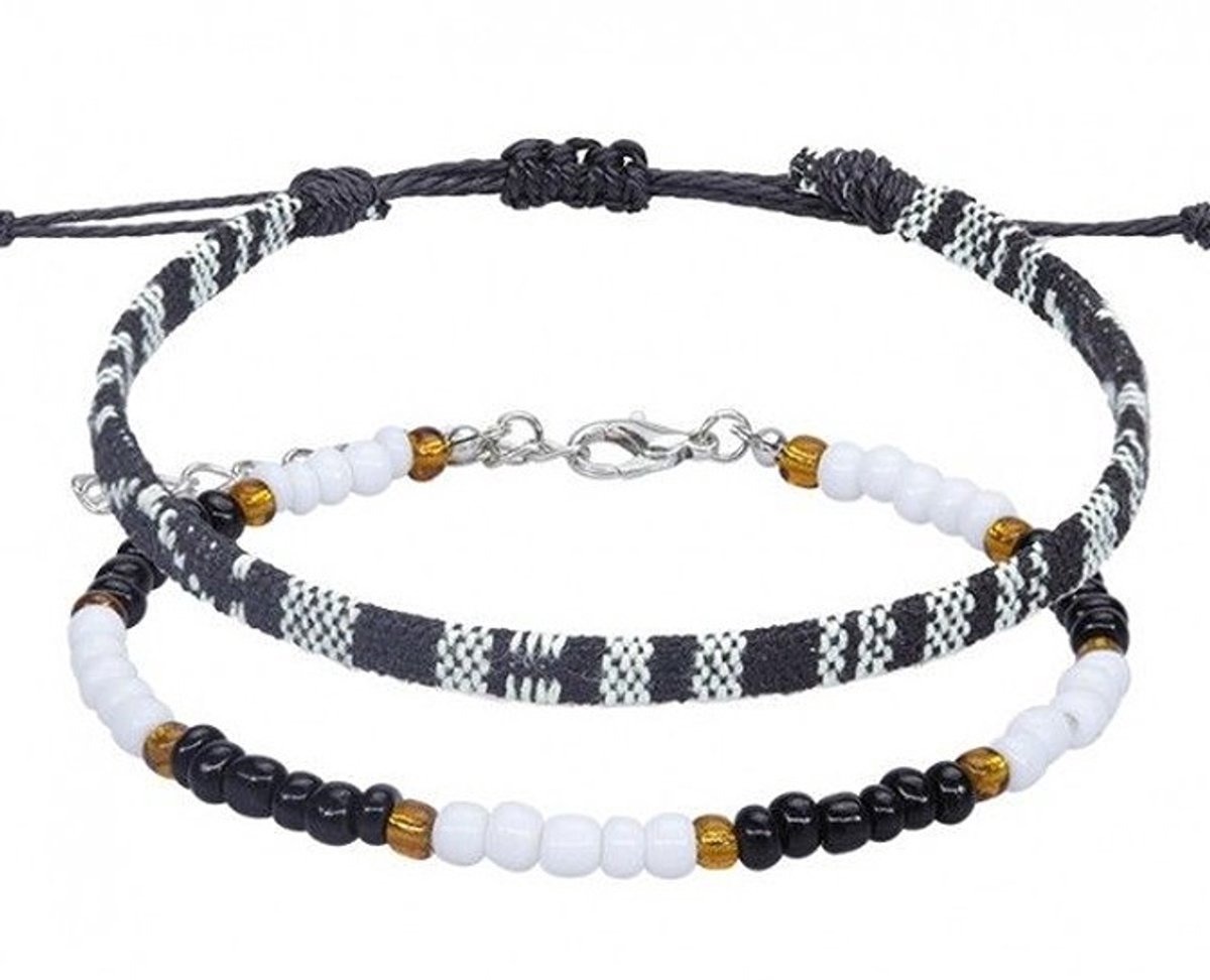 Voeg een sprankje kleur toe aan je outfit met de prachtige zwart/wit -kleurige beaded armbandjes / Enkelbandjes set van She Life Style! Deze set bestaat uit twee stijlvolle enkel- of armbandjes die perfect zijn voor elke gelegenheid. De levendige, handgemaakte kralen in zwart/wit zorgen voor een speelse en trendy uitstraling, terwijl de elegante zilveren sluiting een vleugje verfijning toevoegt. Of je nu een casual look wilt creëren of je outfit wilt opfleuren voor een speciale gelegenheid, deze armbandjes/enkelbandjes zijn de ideale keuze. Draag ze samen voor een gedurfde look of apart voor een subtiele touch. Maak je stijl compleet en laat je persoonlijkheid stralen met deze unieke bandenjes!