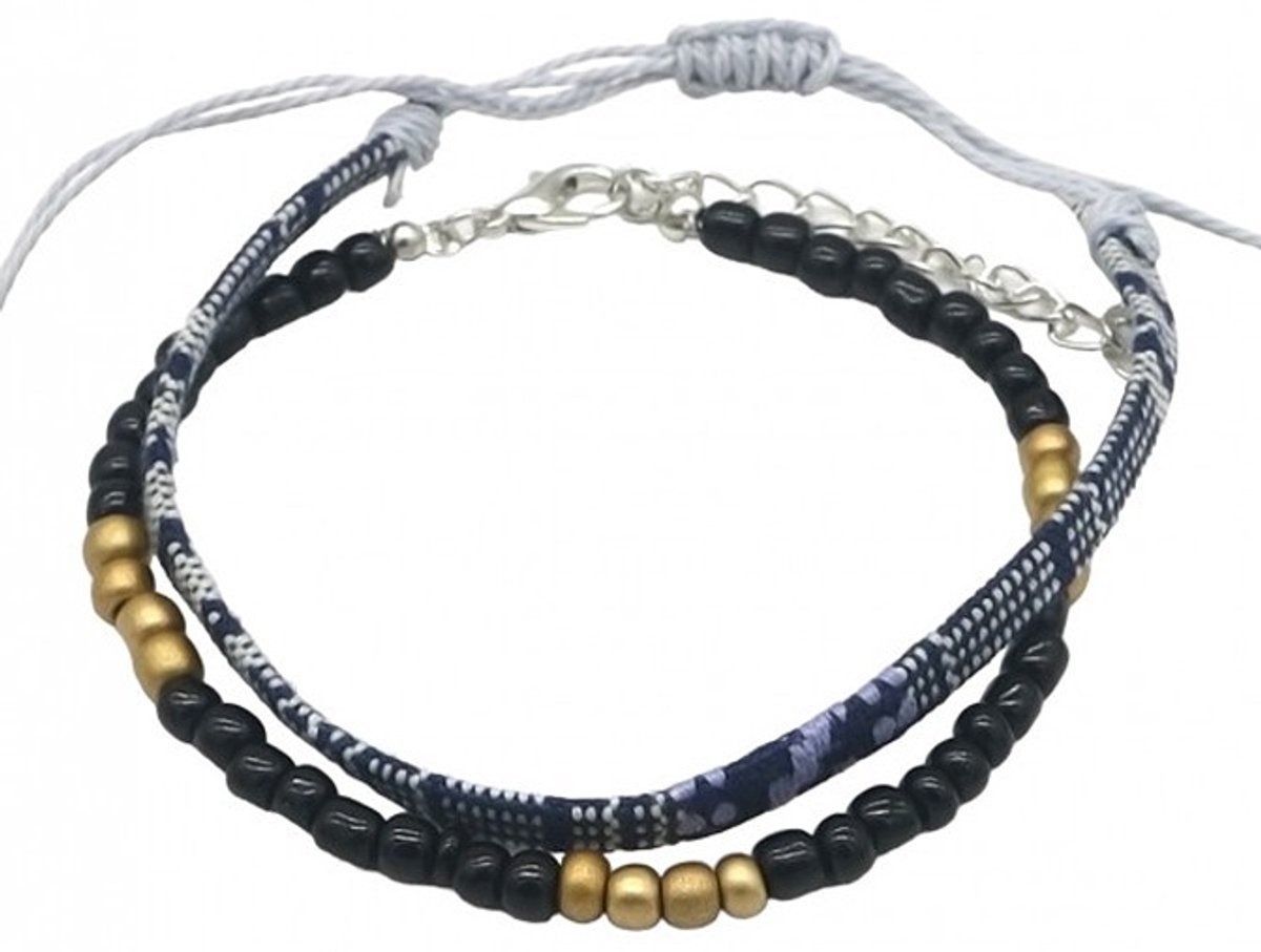 Voeg een sprankje kleur toe aan je outfit met de prachtige zwart en goud-kleurige beaded armbandjes / Enkelbandjes set van She Life Style! Deze set bestaat uit twee stijlvolle enkel- of armbandjes die perfect zijn voor elke gelegenheid. De levendige, handgemaakte kralen in zwart met goud zorgen voor een speelse en trendy uitstraling, terwijl de elegante zilveren sluiting een vleugje verfijning toevoegt. Of je nu een casual look wilt creëren of je outfit wilt opfleuren voor een speciale gelegenheid, deze armbandjes/enkelbandjes zijn de ideale keuze. Draag ze samen voor een gedurfde look of apart voor een subtiele touch. Maak je stijl compleet en laat je persoonlijkheid stralen met deze unieke bandenjes!