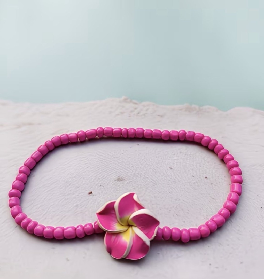Deze prachtige fuchsia enkelband is een echte blikvanger! Gemaakt van hoogwaardige polymeren klei en plumeria hars, straalt deze elastische enkelband een zomerse charme uit die perfect is voor elke gelegenheid. De delicate bloemen zijn met zorg vervaardigd en voegen een speelse, maar elegante touch toe aan je outfit. Dankzij de elastische kralen is de enkelband comfortabel te dragen en past hij zich moeiteloos aan je enkel aan. Of je nu een dagje naar het strand gaat of een avondje uit, deze enkelband is de ideale accessoire om je look compleet te maken. Voeg een vleugje kleur en vrolijkheid toe aan je sieradencollectie met deze unieke en handgemaakte enkelband!
