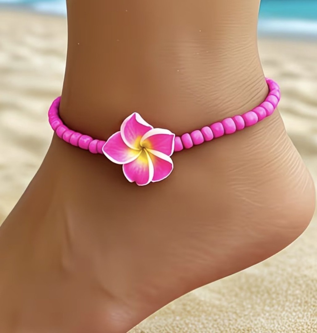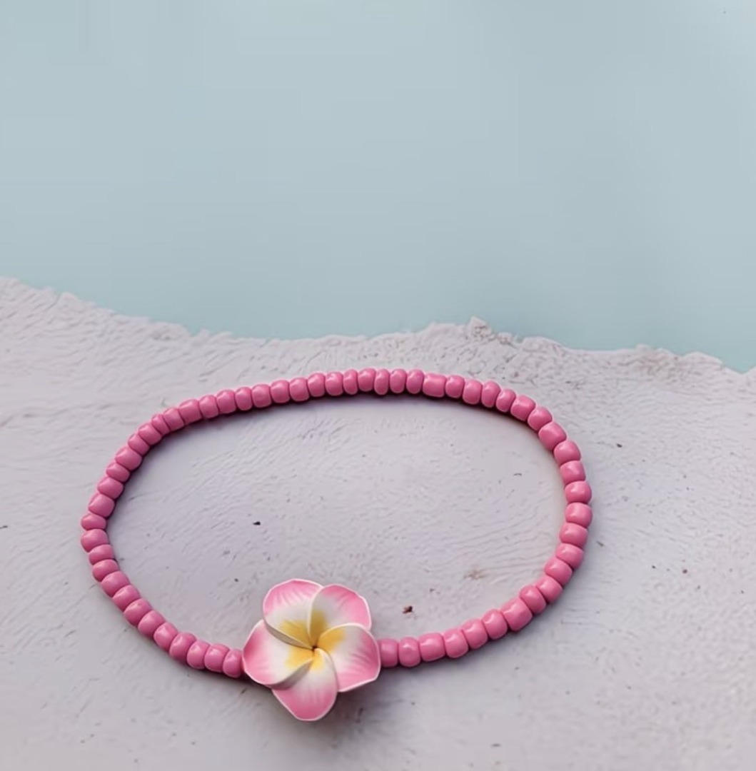 Deze prachtige roze enkelband is een echte blikvanger! Gemaakt van hoogwaardige polymeren klei en plumeria hars, straalt deze elastische enkelband een zomerse charme uit die perfect is voor elke gelegenheid. De delicate bloemen zijn met zorg vervaardigd en voegen een speelse, maar elegante touch toe aan je outfit. Dankzij de elastische kralen is de enkelband comfortabel te dragen en past hij zich moeiteloos aan je enkel aan. Of je nu een dagje naar het strand gaat of een avondje uit, deze enkelband is de ideale accessoire om je look compleet te maken. Voeg een vleugje kleur en vrolijkheid toe aan je sieradencollectie met deze unieke en handgemaakte enkelband!