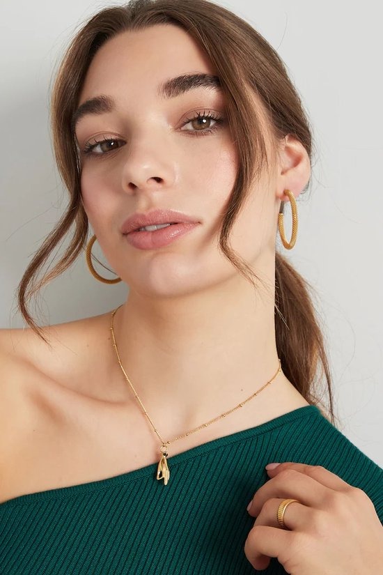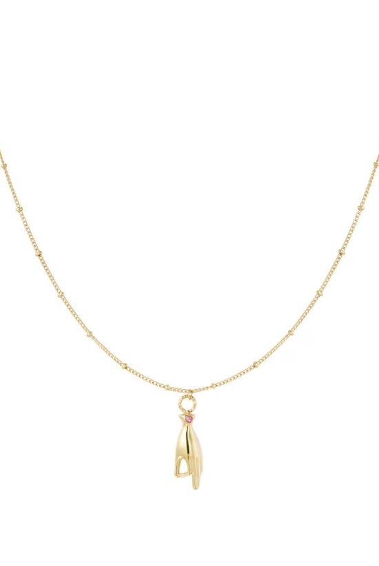 Ben jij op zoek naar een toffe statement ketting? Check dan snel deze gouden ketting met handbedel en roze steentje. De ketting is mega leuk te combineren met meerdere sieraden met steentjes, zoals een armbandje of oorbellen. De ketting is gemaakt van stainless steel en strass steentjes en is verstelbaar. Dankzij de verstelbare sluiting kun je ze vanaf 39 tot en met 44 dragen.