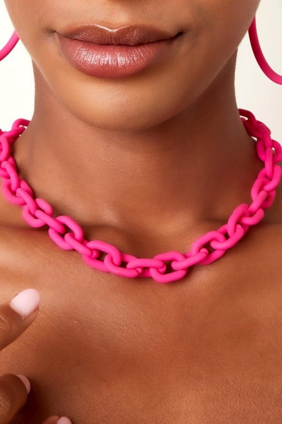 Maak een statement met onze opvallende roze ketting, vervaardigd uit hoogwaardig acryl en voorzien van een elegante gouden ketting. Deze grote geketende acryl ketting voegt een speelse en trendy touch toe aan elke outfit, perfect voor zowel casual als formele gelegenheden. Met zijn unieke kleur en ontwerp is deze ketting een must-have accessoire dat je look moeiteloos naar een hoger niveau tilt. Voeg deze prachtige ketting vandaag nog toe aan je collectie en laat je stijl stralen!