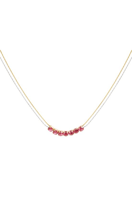Dit is echt een hele leuke ketting waar je indruk mee gaat maken. Deze stainless steel ketting heeft 2 kettinkjes, waarvan 1 goud is en 1 zilver. Aan de ketting zitten 7 gekleurde zirkonia's. Deze zijn beschikbaar in roze groen en beige. De ketting is 35 cm lang en door het verlengstukje met 7 cm te verlengen.