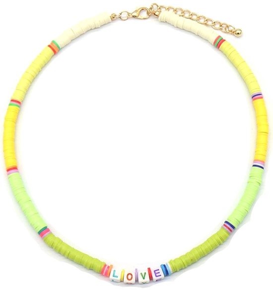 She Life Style - Ketting LOVE - Kralen - Lengte Verstelbaar 42-48 cm - Geel en Groen