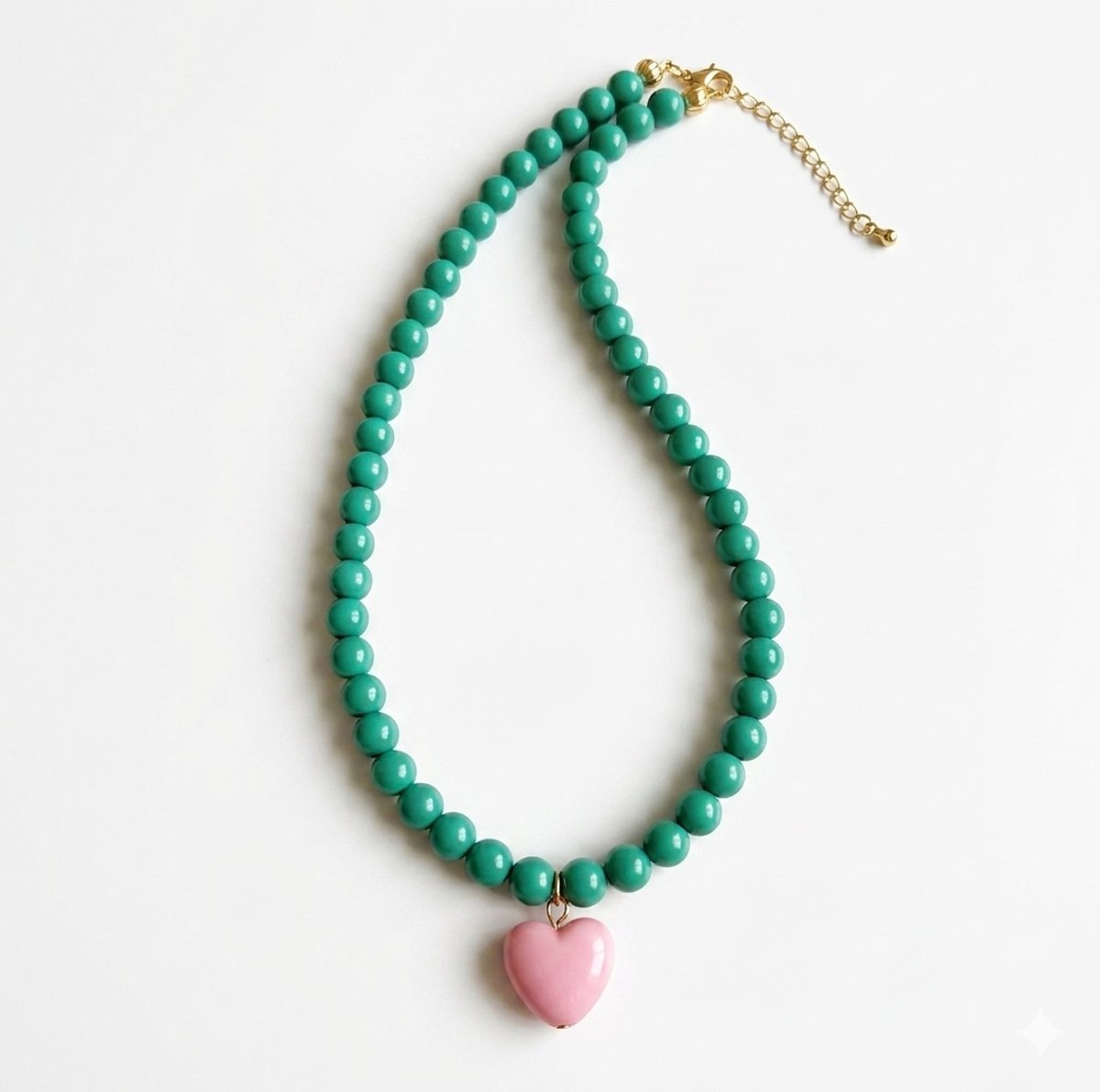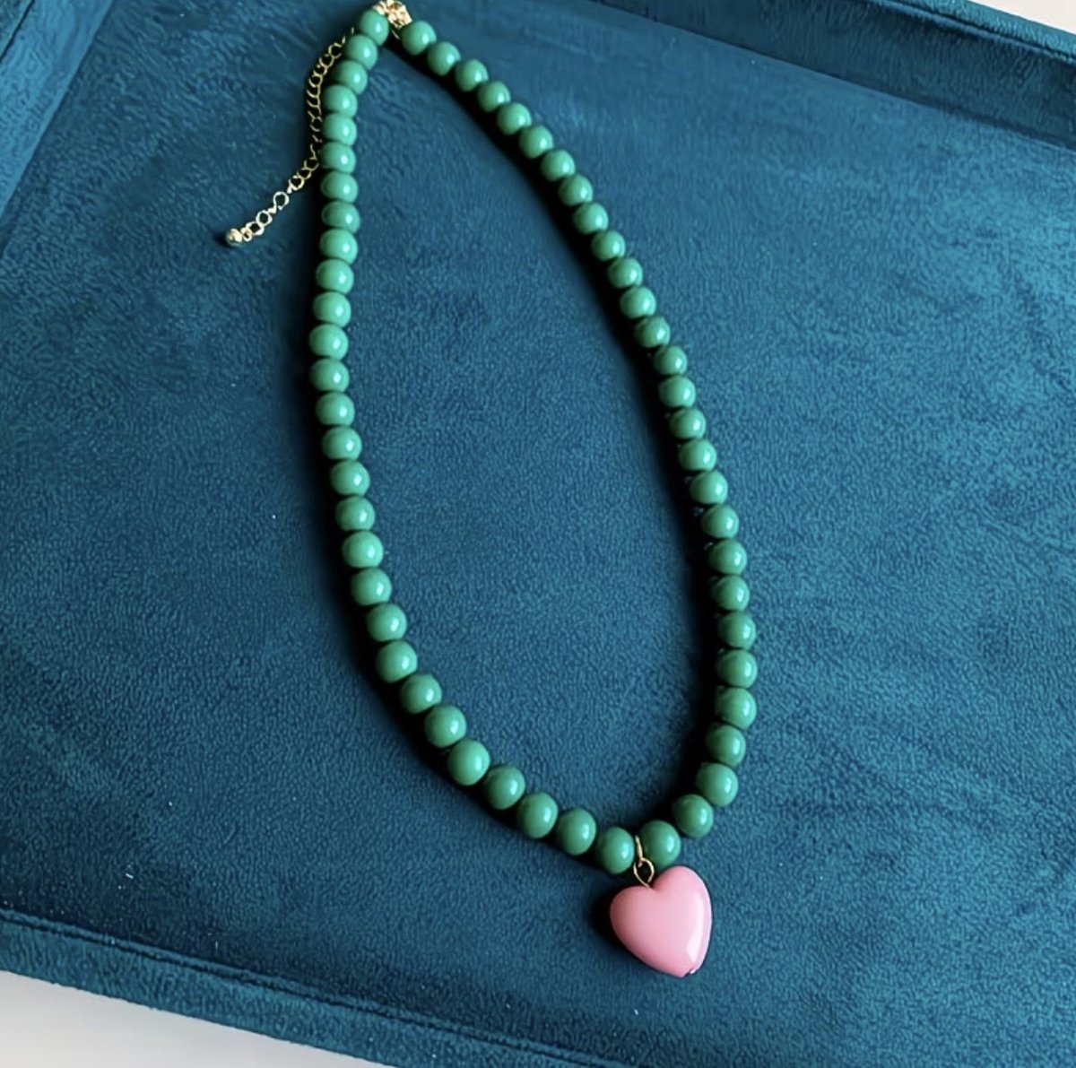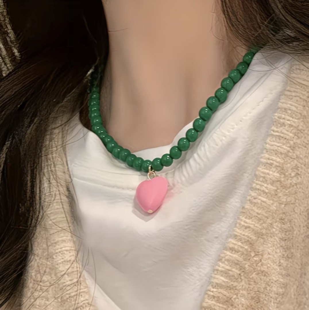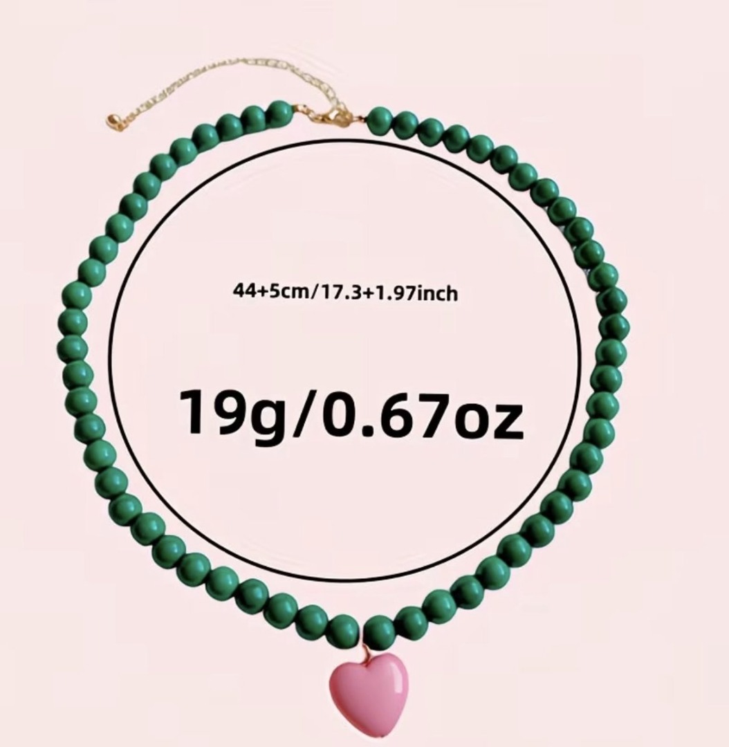 Maak een statement met onze modieuze kralenketting voor dames, een perfecte mix van speelsheid en elegantie. Deze handgemaakte ketting is vervaardigd met groene ronde kralen in contrasterende macaronkleuren, waardoor elke outfit een vrolijke touch krijgt. De opvallende hartvormige hanger in een zachte roze tint voegt een romantisch accent toe, ideaal voor elke gelegenheid. Of je nu een casual look wilt opfrissen of een speciale gelegenheid wilt vieren, deze korte halsaccessoire in Boheemse stijl is de perfecte keuze. Draag het alleen of combineer het met andere kettingen voor een trendy gelaagd effect. Voeg deze unieke ketting toe aan je sieradencollectie en laat je persoonlijkheid stralen!