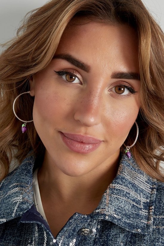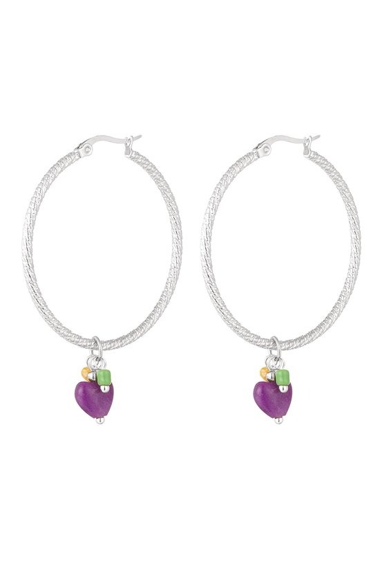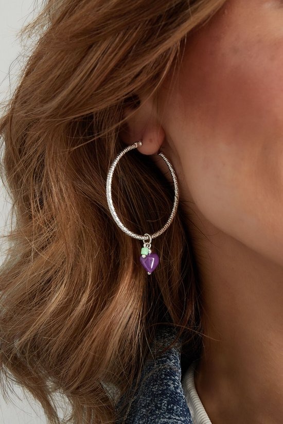 YWG - oorringen natuursteen paars hart - Zilver kleurig